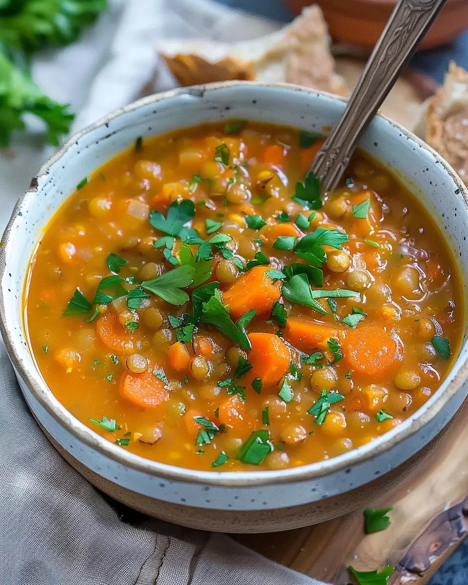 A warm and hearty soup made with carrots and lentils, perfect for chilly evenings.