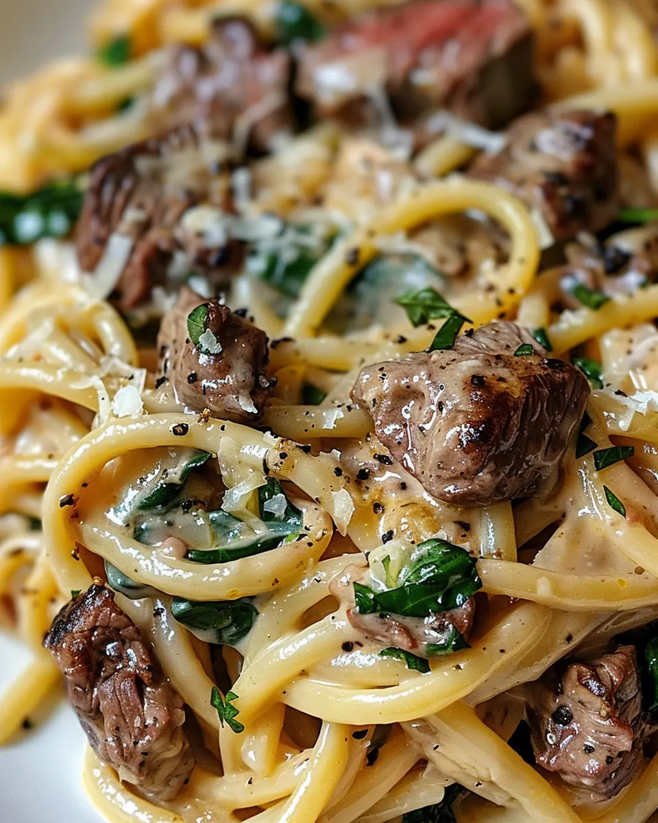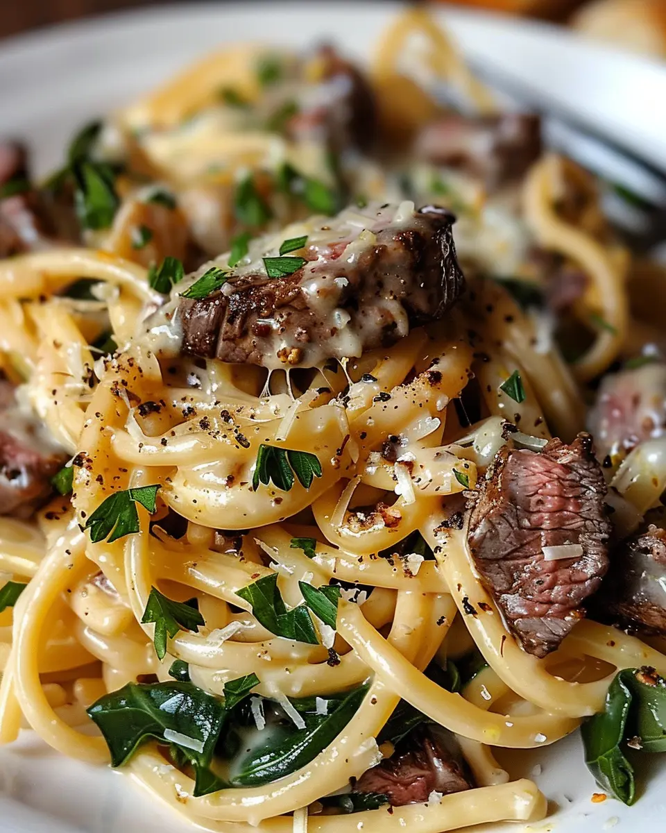 Creamy Cowboy Butter Linguine with Steak Bites & Spinach Recipe