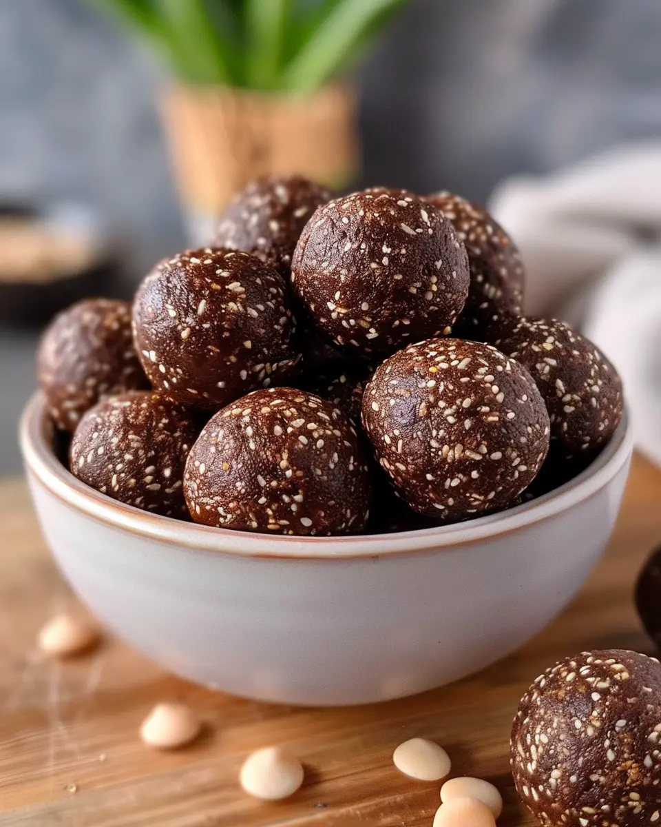Imagine biting into a rich, chocolatey protein ball that feels like a treat but is actually a healthy snack. These chocolate protein balls are super easy to whip up. Here’s what you need: