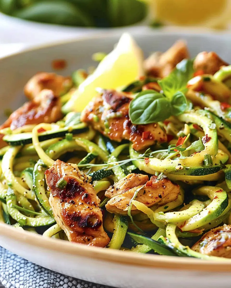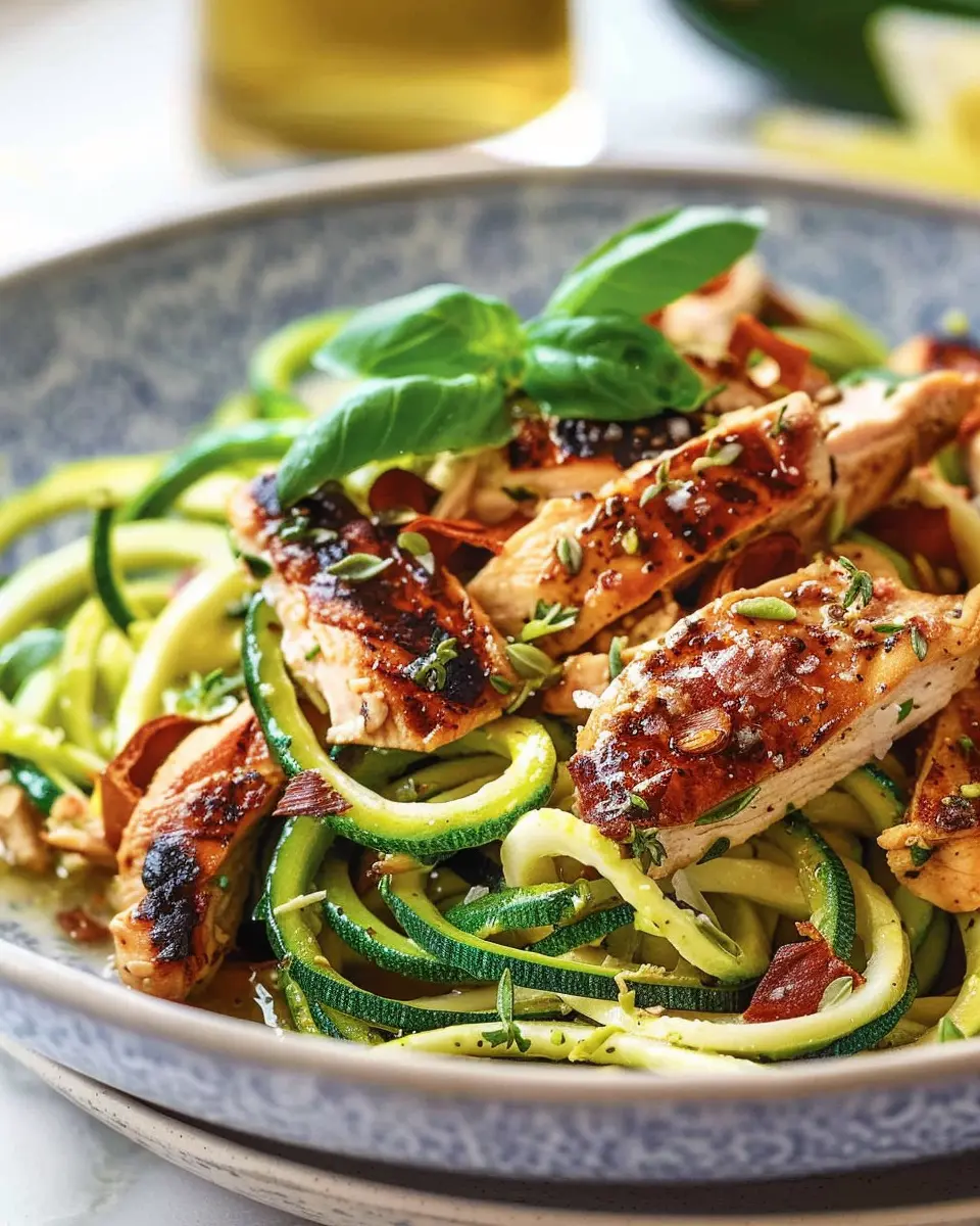 Presentation can transform a simple dish into a showstopper. For your Greek chicken zucchini noodles, try twirling the noodles into a nest shape on a light-colored plate. Top with grilled chicken pieces and a sprinkle of fresh herbs like parsley or dill. Add lemon zest for a pop of color. For an artistic touch, drizzle a bit of extra virgin olive oil around the plate and scatter some Kalamata olives. This not only looks beautiful but also tantalizes the taste buds!