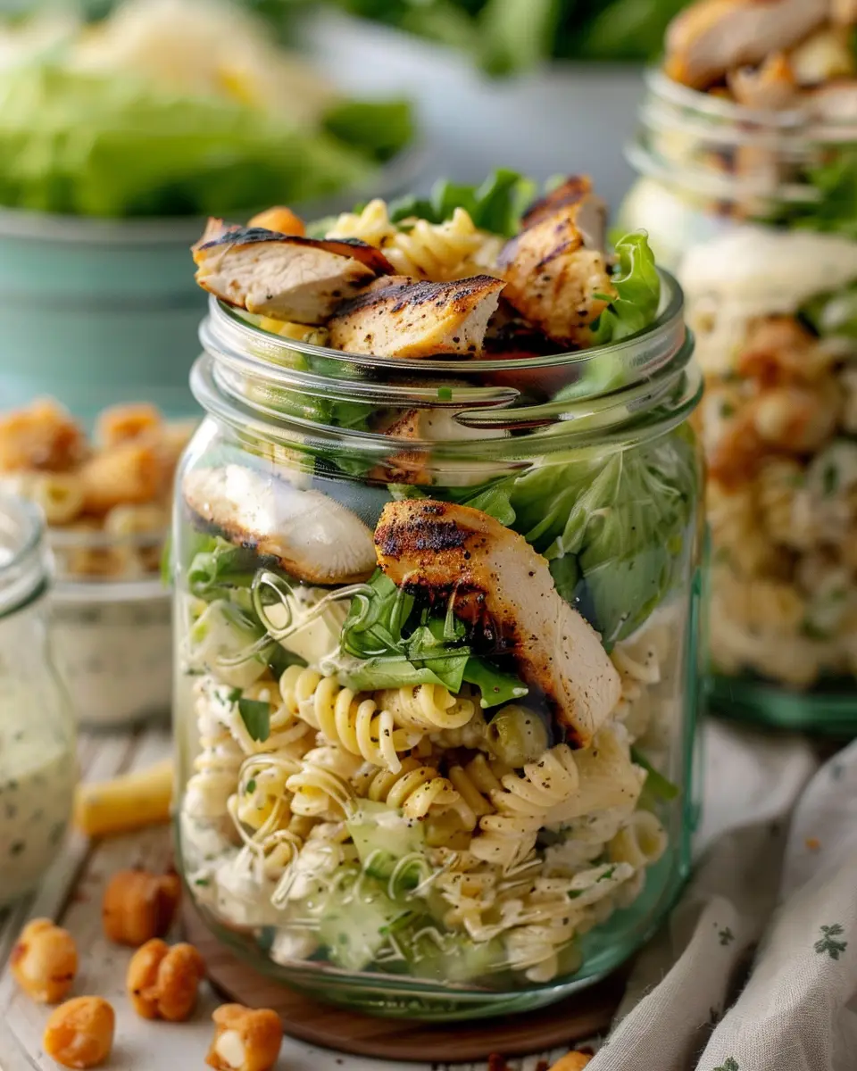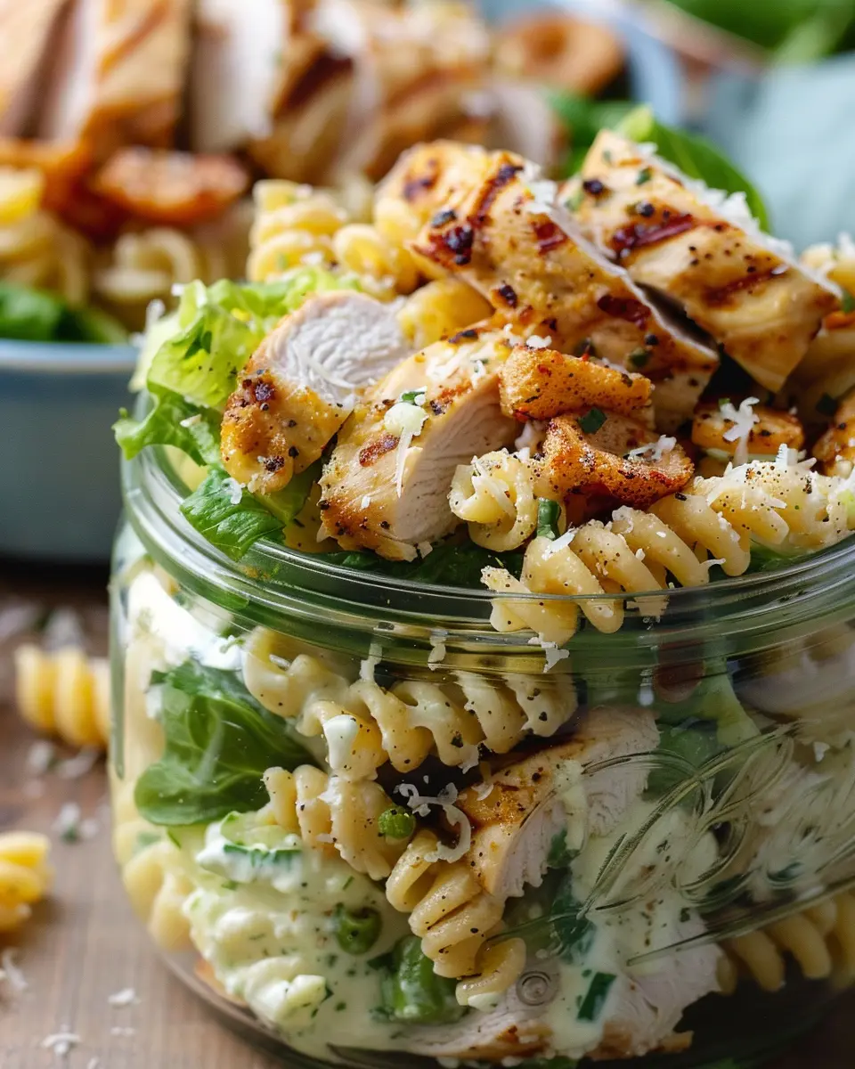 Introduction to Grilled Chicken Caesar Pasta Salad Jars
