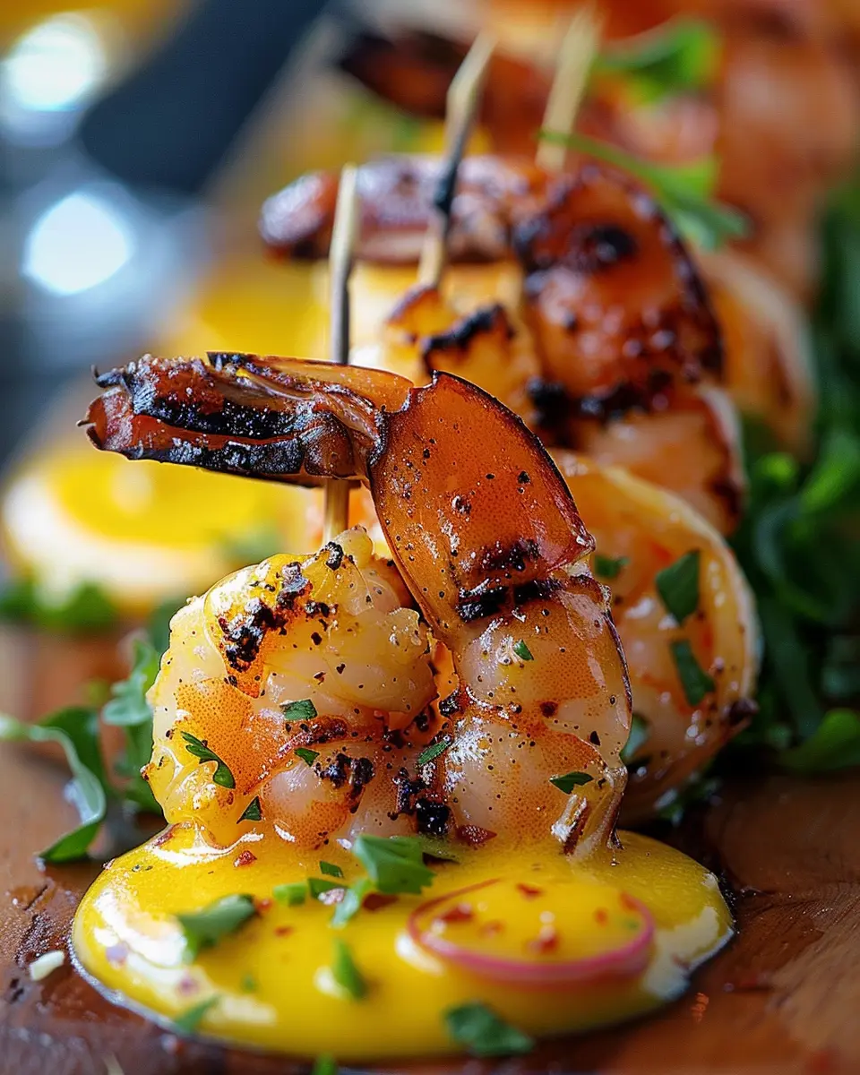 To kick things off, marinating your shrimp is crucial for infusing them with flavor. You’ll want to use fresh or thawed shrimp—preferably deveined and peeled, but tails left on for presentation. Here’s a simple marinade you can whip up: