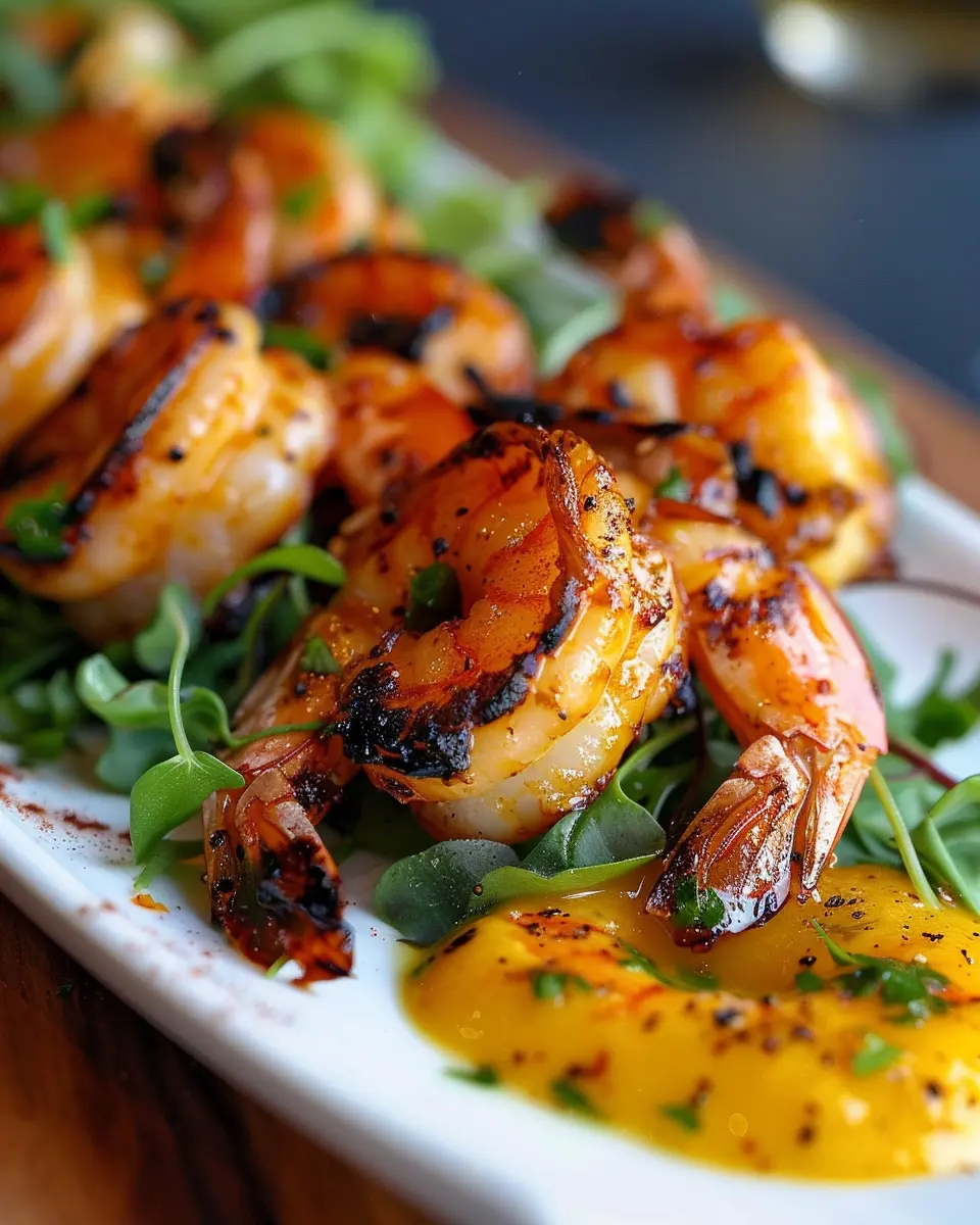 PrintGrilled Shrimp with Spicy Mango Lime Coulis: A Juicy Delight