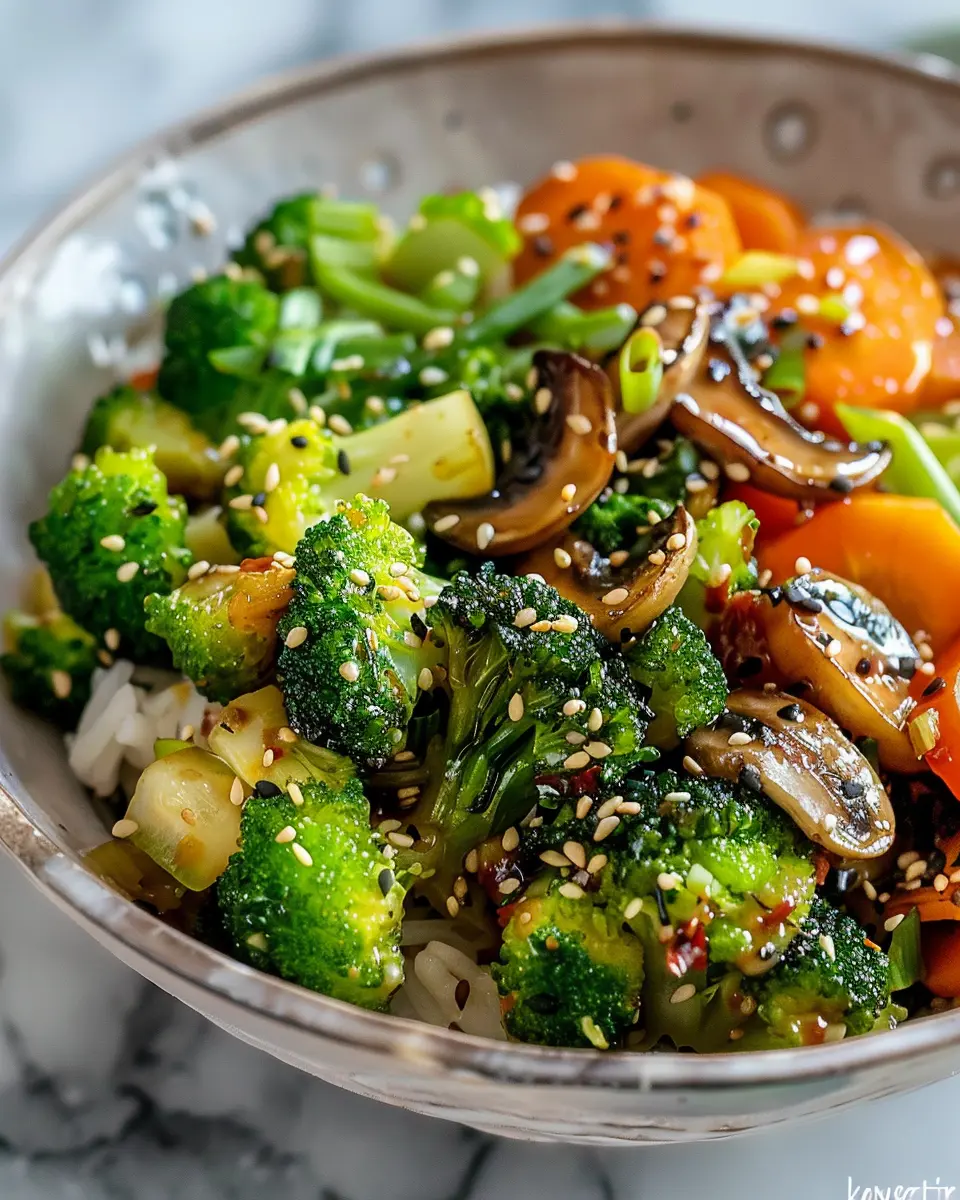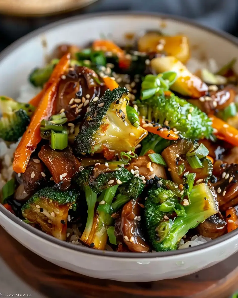 Once the garlic and ginger have melded beautifully with your veggies, it’s time to add a bit of liquid gold: a splash of soy sauce and a drizzle of honey. This combination not only enhances the uh-mazing flavors but also gives your vegetables that attractive glossy finish. Cook for another 2 minutes, tossing everything to ensure even distribution.