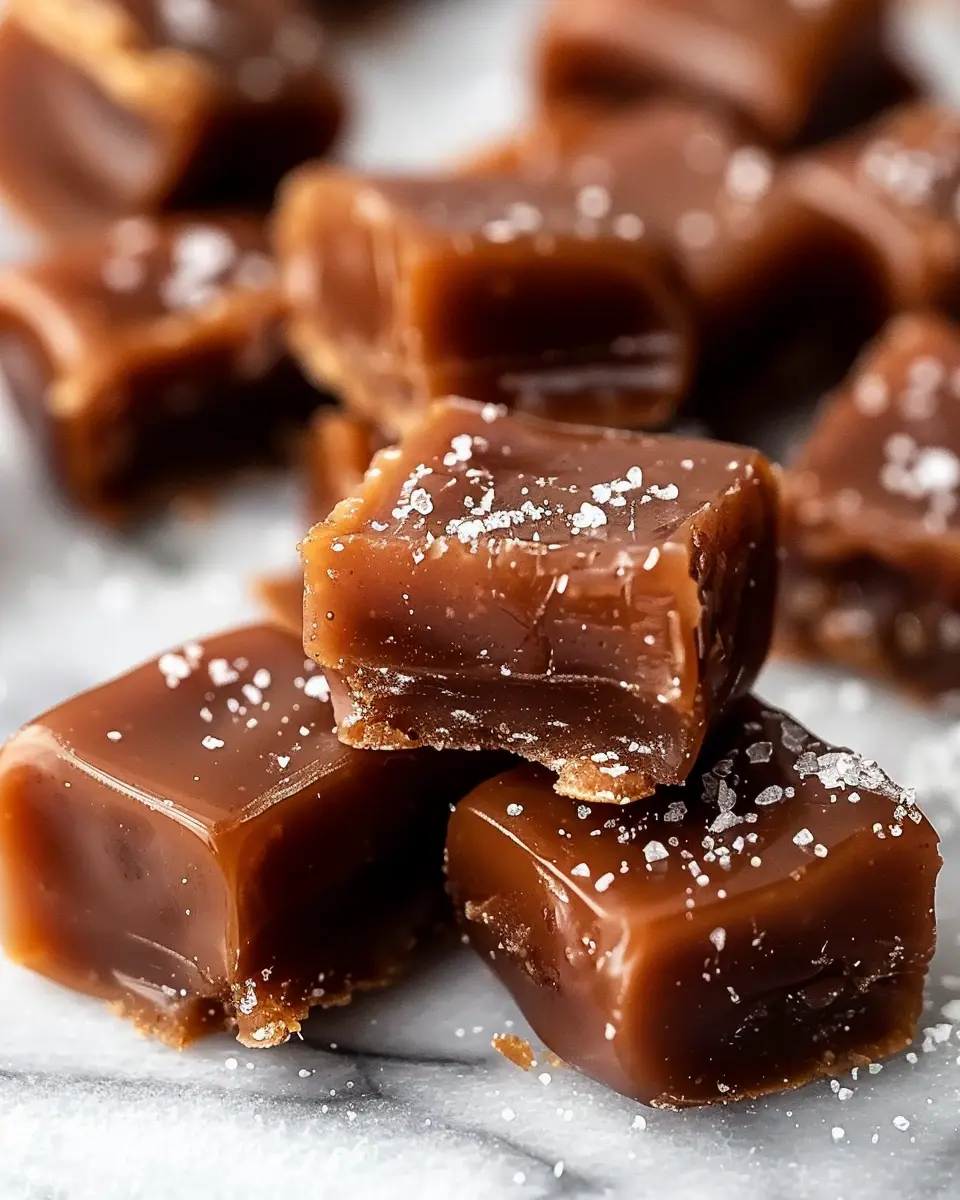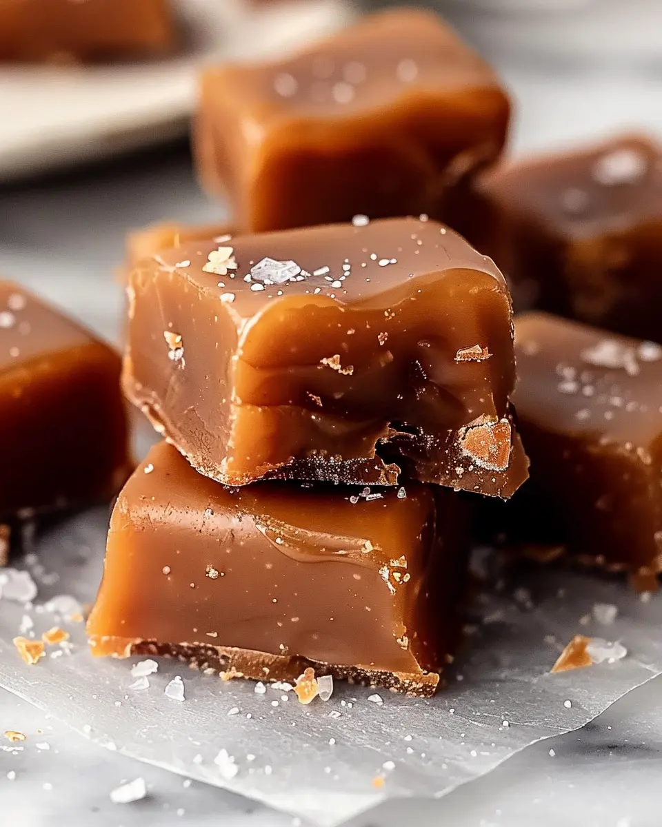 After letting your caramel mixture chill, it’s time for the fun part! Lift the parchment paper out of the dish and place it on a cutting board. Use a sharp knife to slice the caramel into squares or rectangles—whatever suits your style. Aim for bite-sized pieces, as they’ll make for perfect snacking!