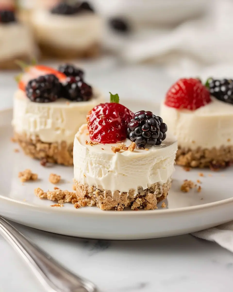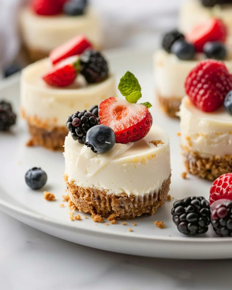• Fresh Berries: A handful of raspberries or blueberries adds vibrant color and a pop of acidity that balances the richness of the cheesecake.