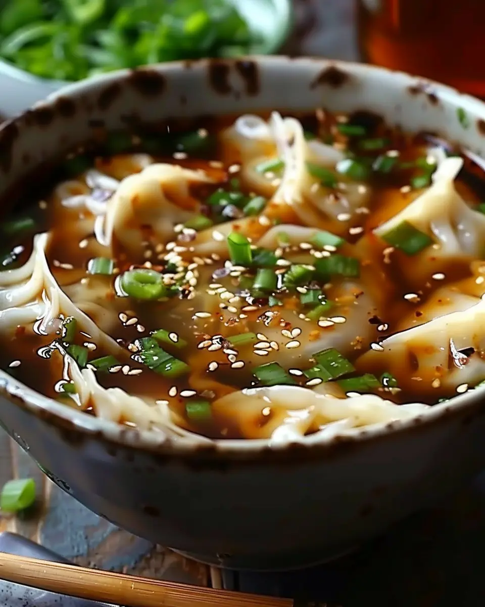 Zesty Spicy Potsticker Soup with Chili Oil