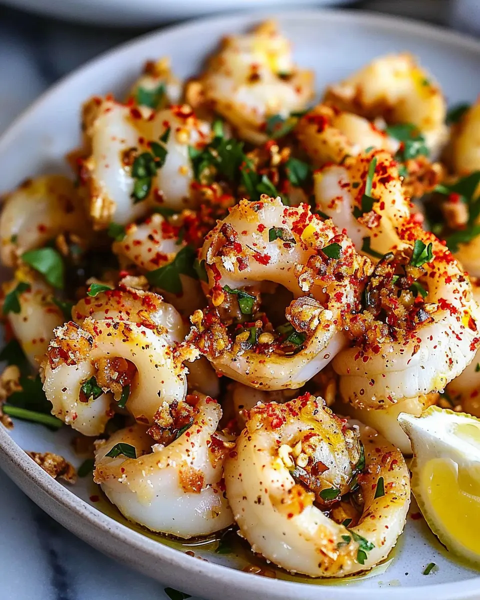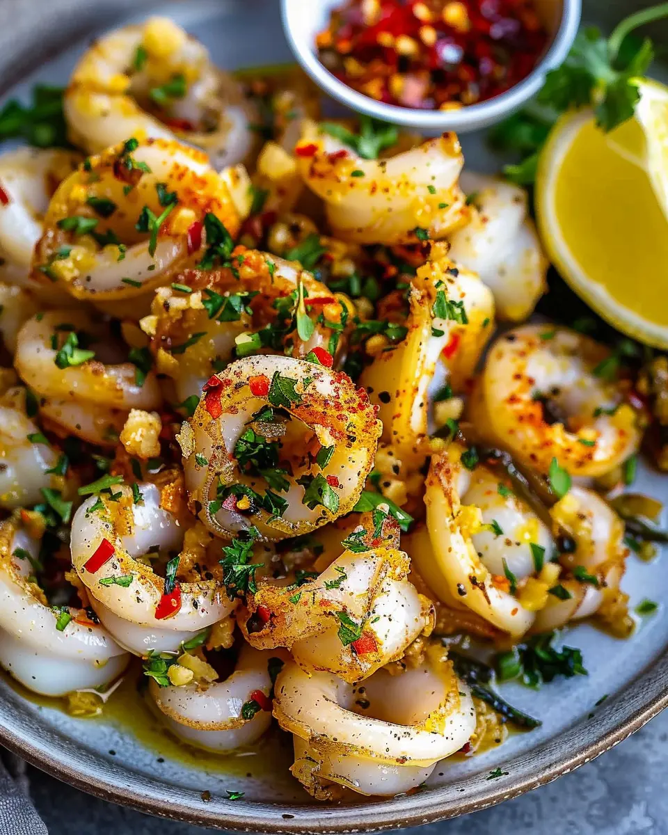 - Serve: Plate the calamari beautifully and garnish with freshly chopped parsley and a lemon wedge for that zesty touch. This dish is delicious hot but can also be served at room temperature, making it versatile for parties or casual dinners.