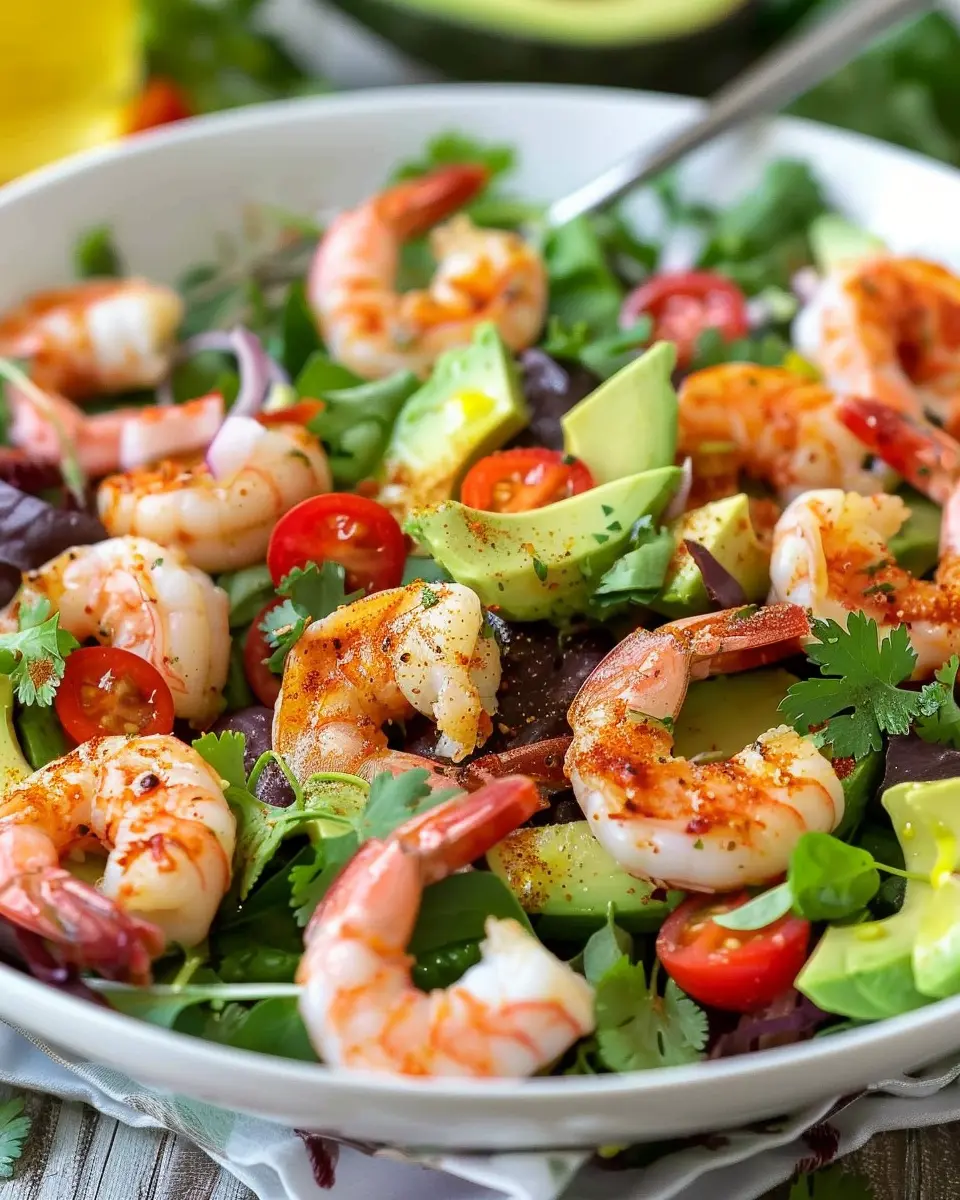 A refreshing salad that combines spicy shrimp with creamy avocado for a perfect balance of flavors.