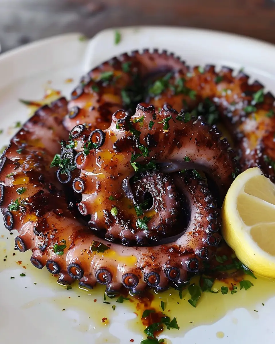 Imagine warm evenings by the Mediterranean Sea. This version captures those sun-soaked vibes with a zesty blend of flavors. Start by marinating your octopus in a concoction of olive oil, lemon juice, chopped garlic, and fresh herbs like parsley and oregano. This not only imparts a fresh taste but also tenderizes the meat.